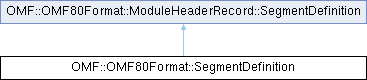Public Attributes inherited from OMF::OMF80Format::ModuleHeaderRecord::SegmentDefinition | |